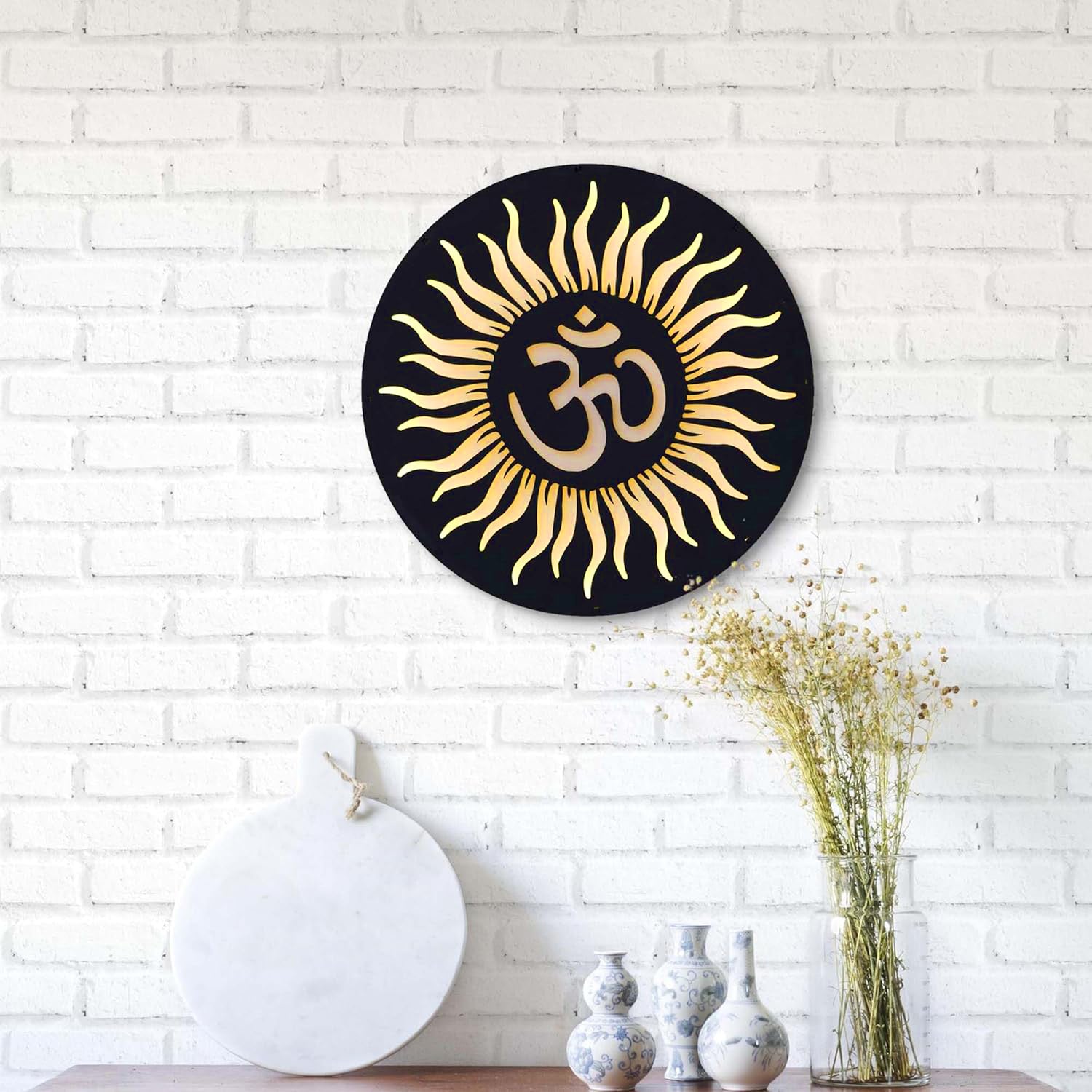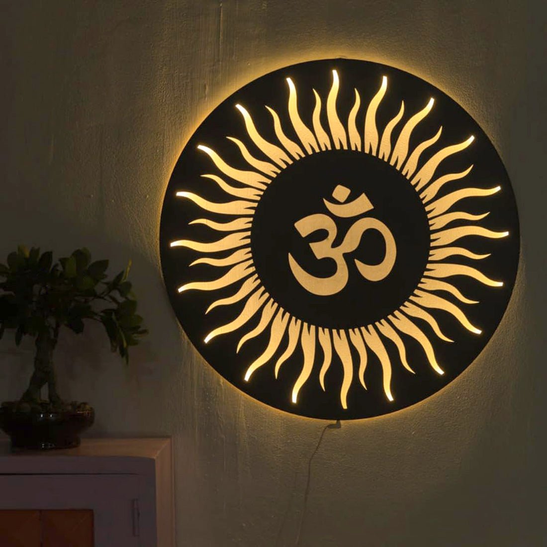MDF Cutout Wall Art Sun & Om Symbol With LED Back light Lamp