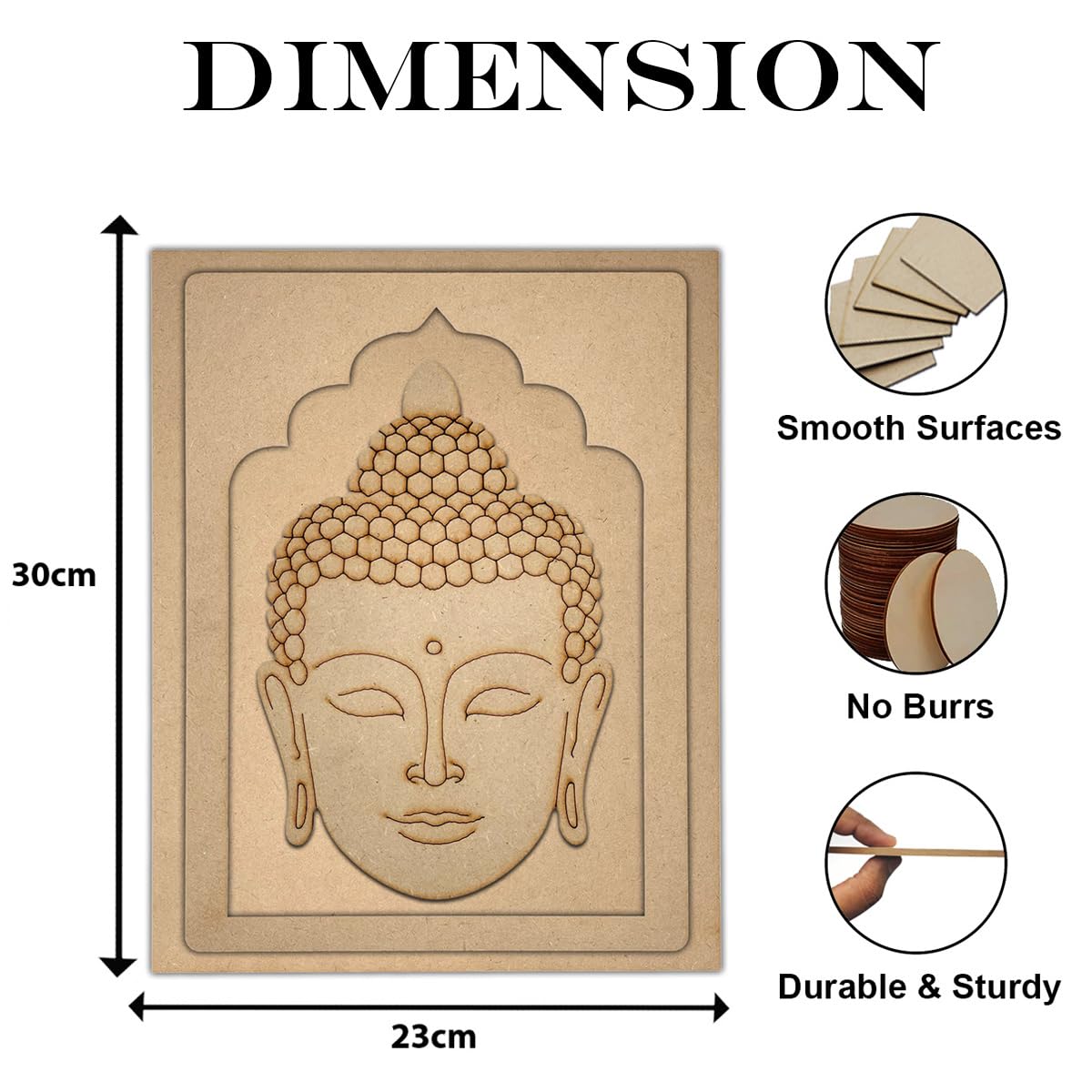 MDF Board for Lippan Art - Pre-Marked Lord Buddha Face Design Cutouts for Craft, Painting, DIY Projects