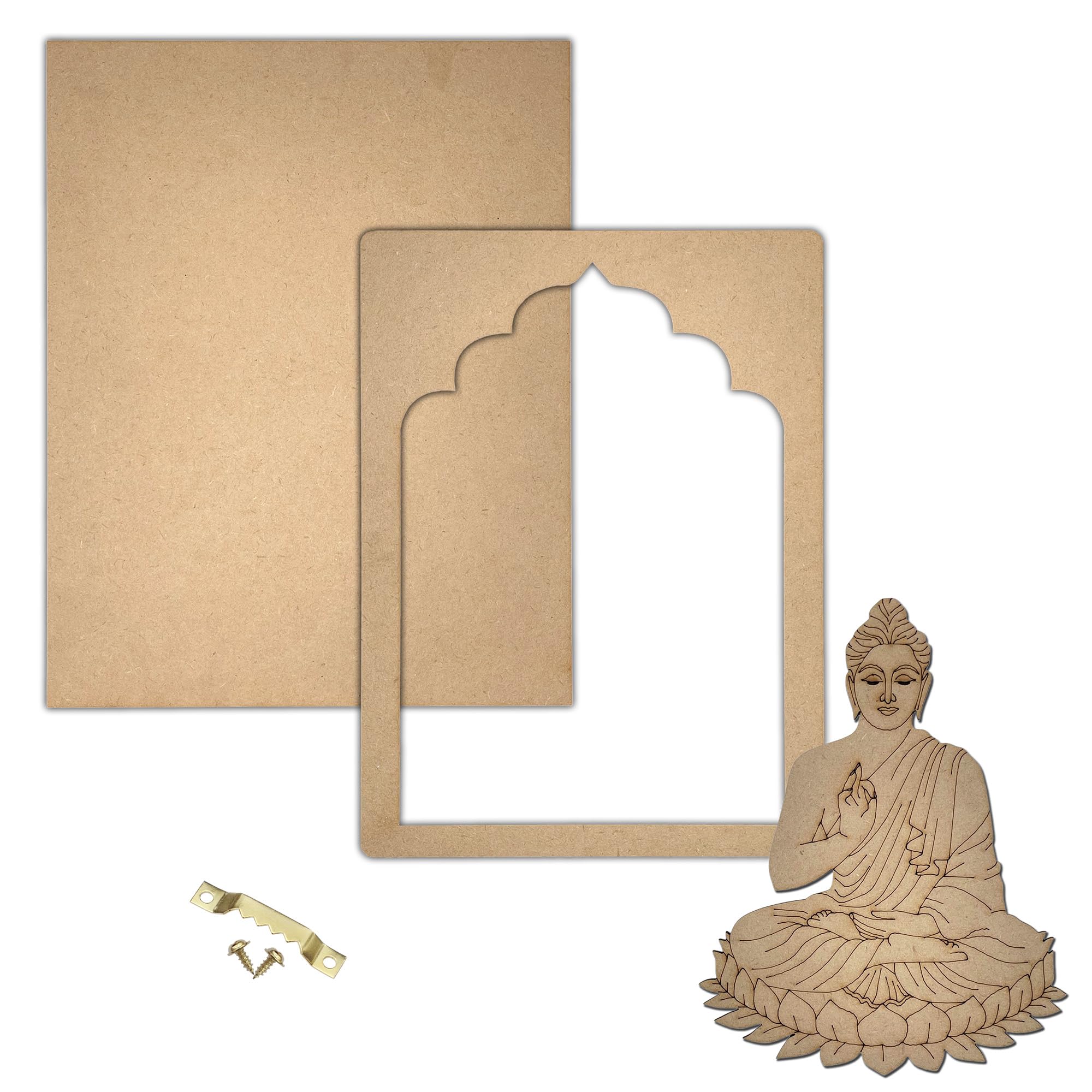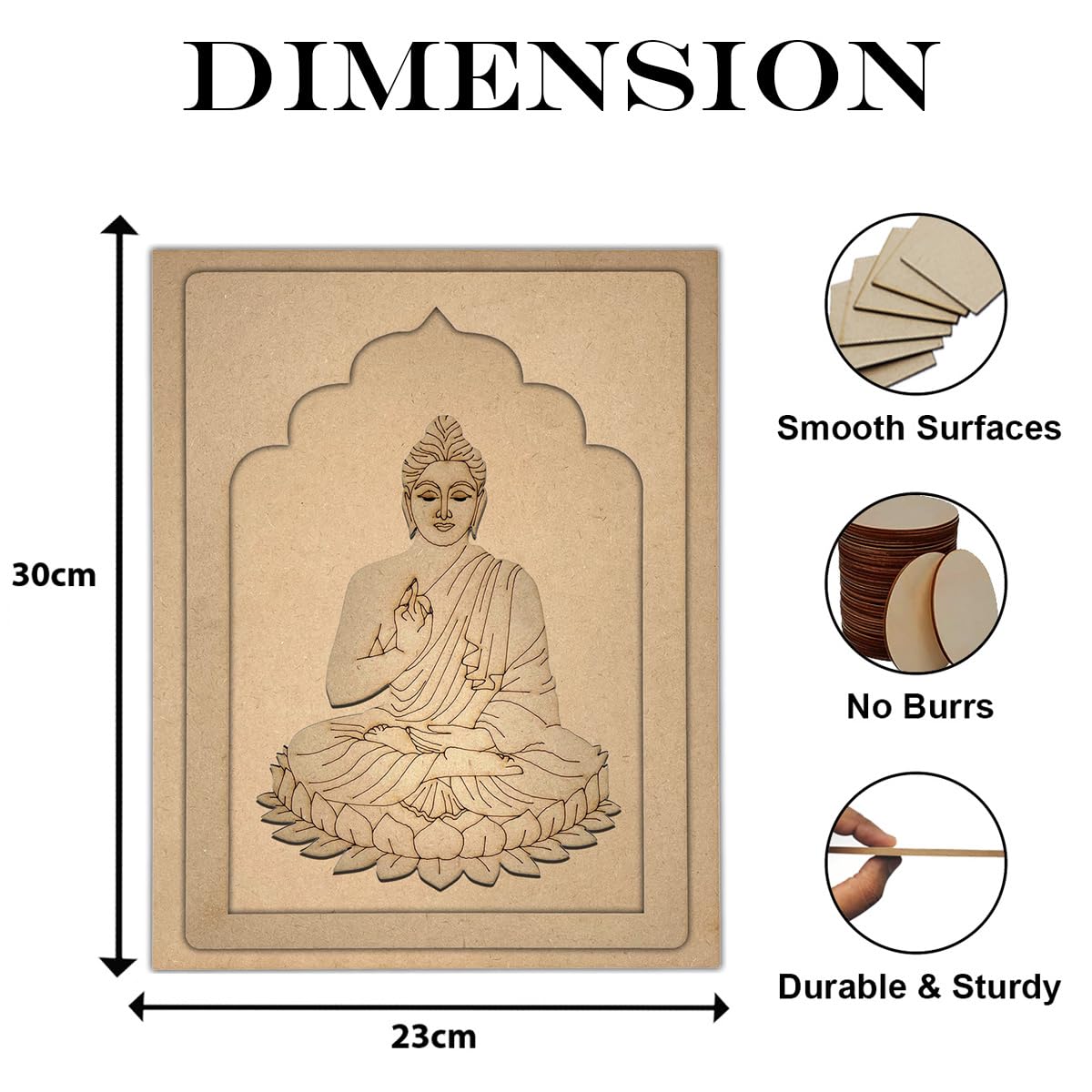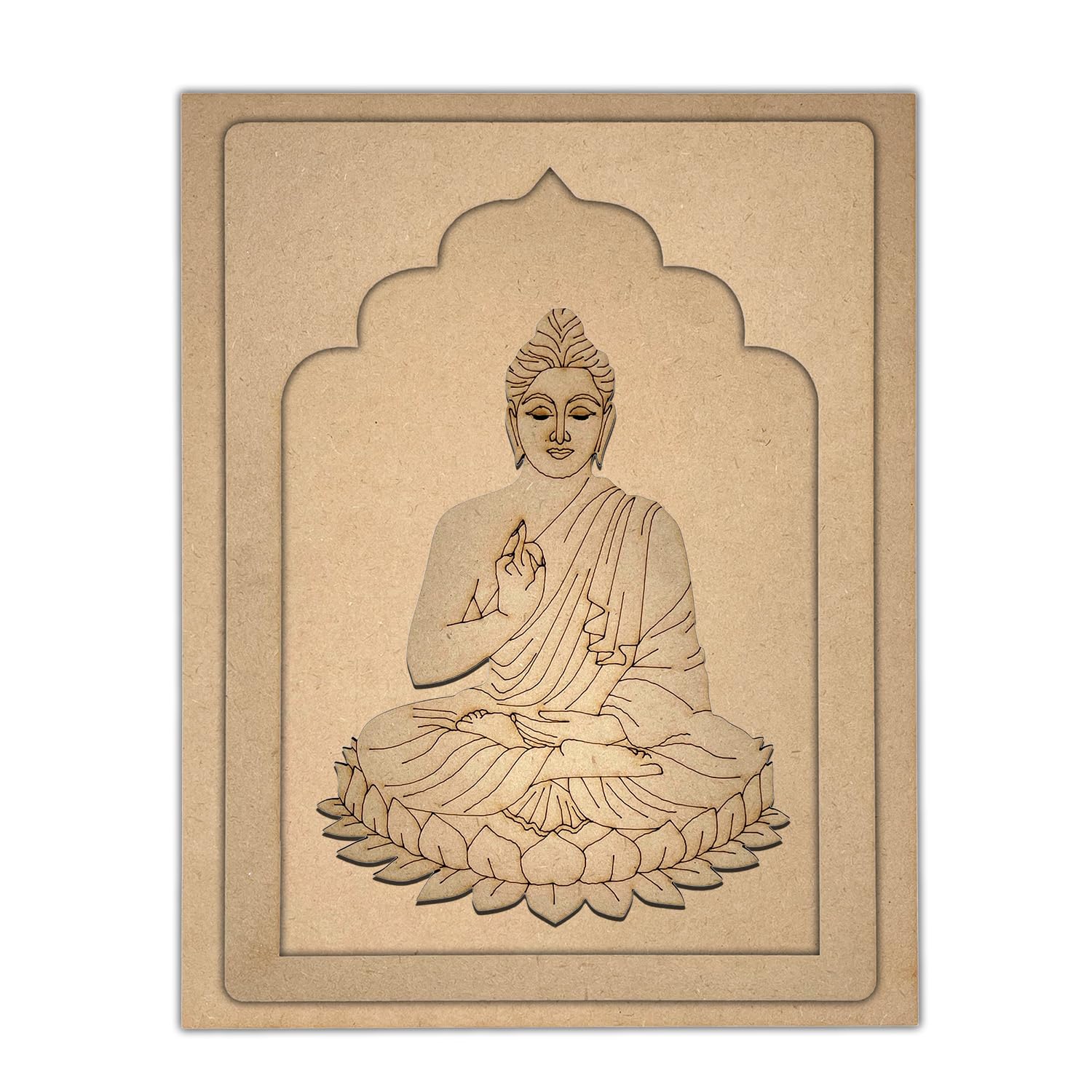 MDF Board for Lippan Art - Pre-Marked Lord Buddha on Lotus Design Cutouts for Craft, Painting, DIY Projects