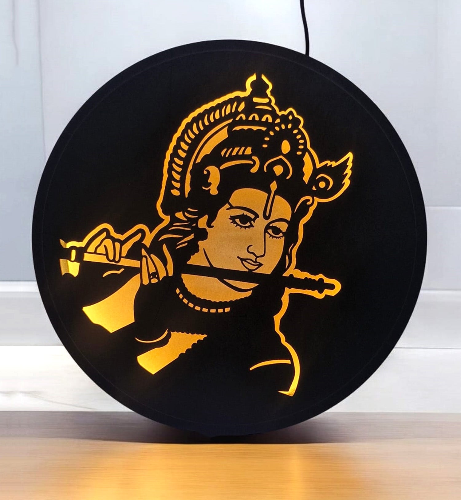 MDF Cutout Wall Art Shree Krishna Ji With LED Back light Lamp
