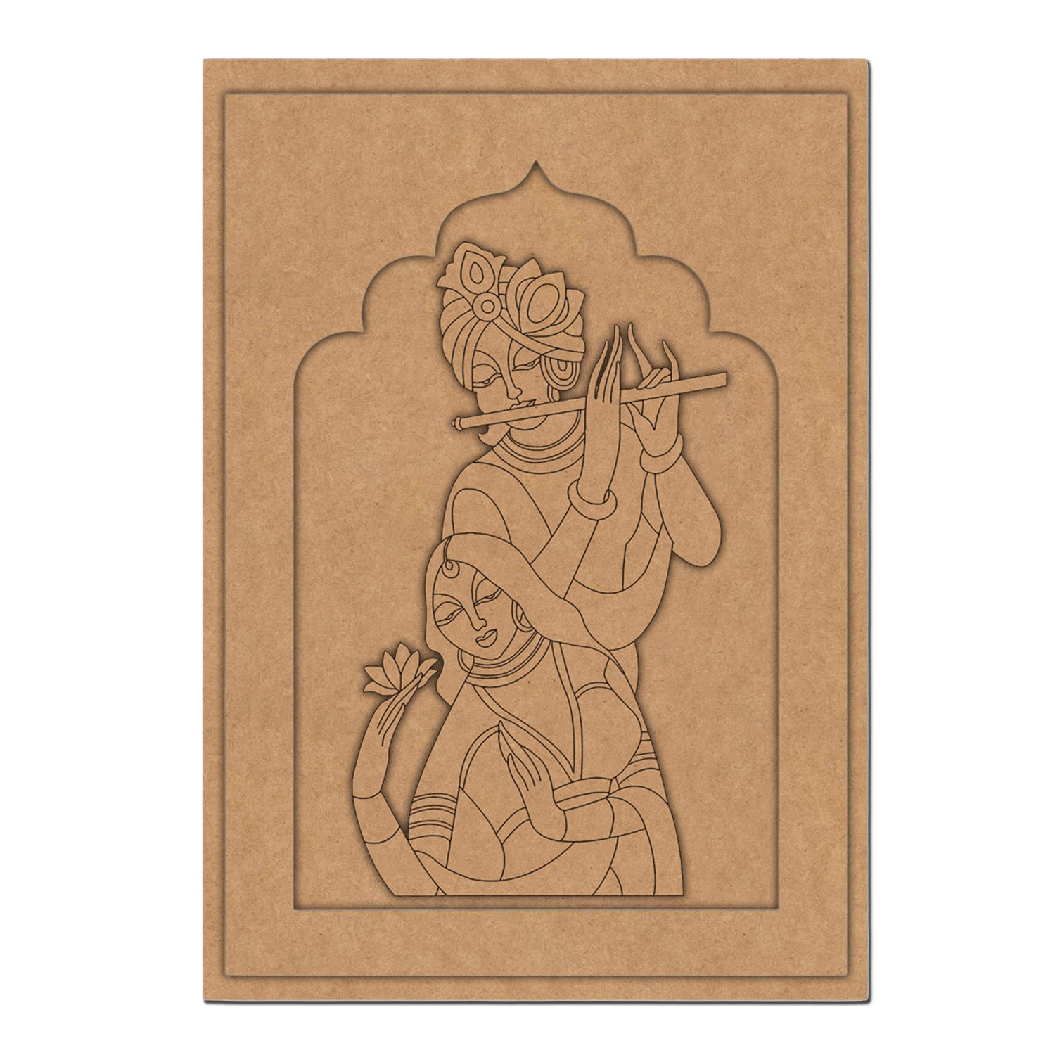 Pre-Marked MDF Radha & Krishna Cutout in Jharokha