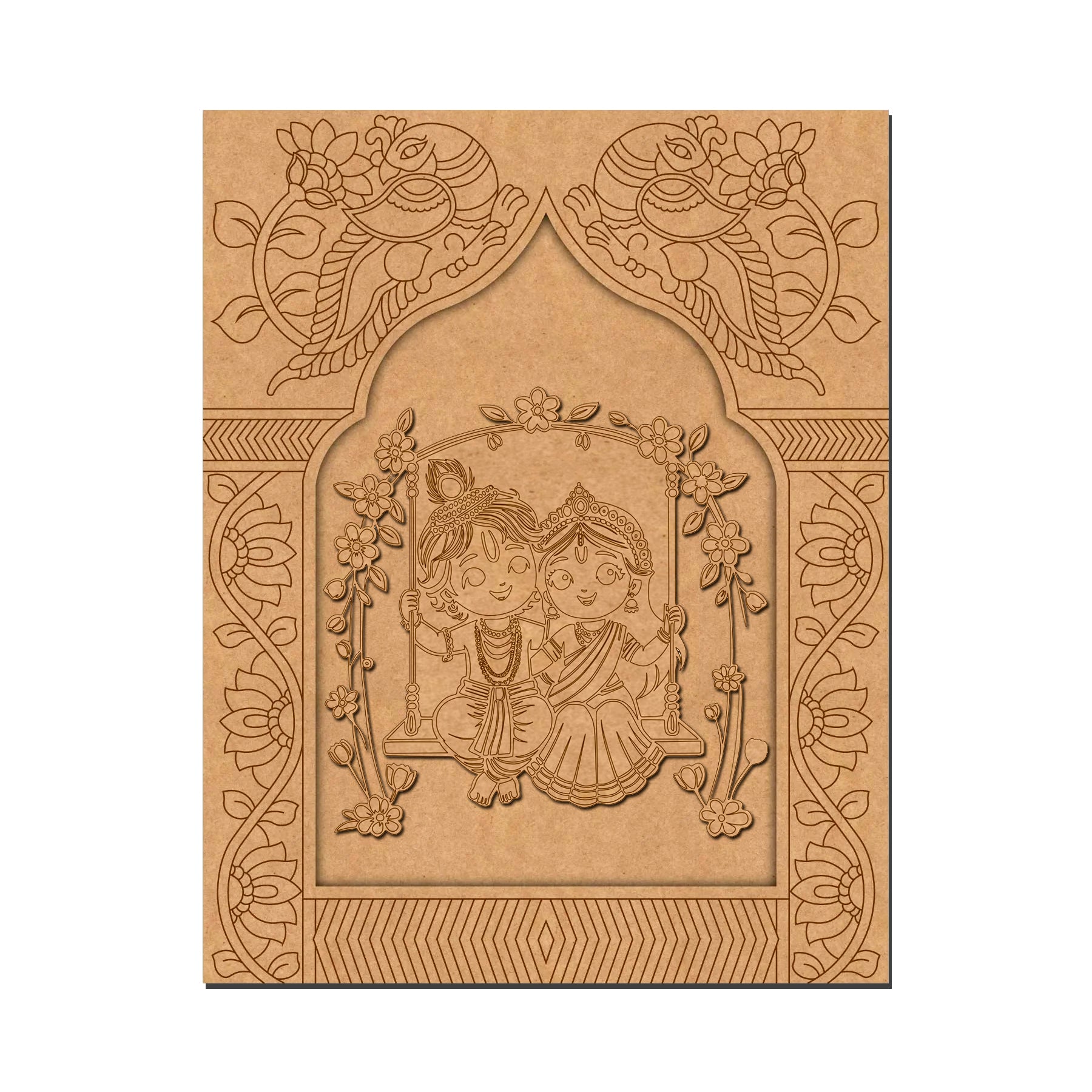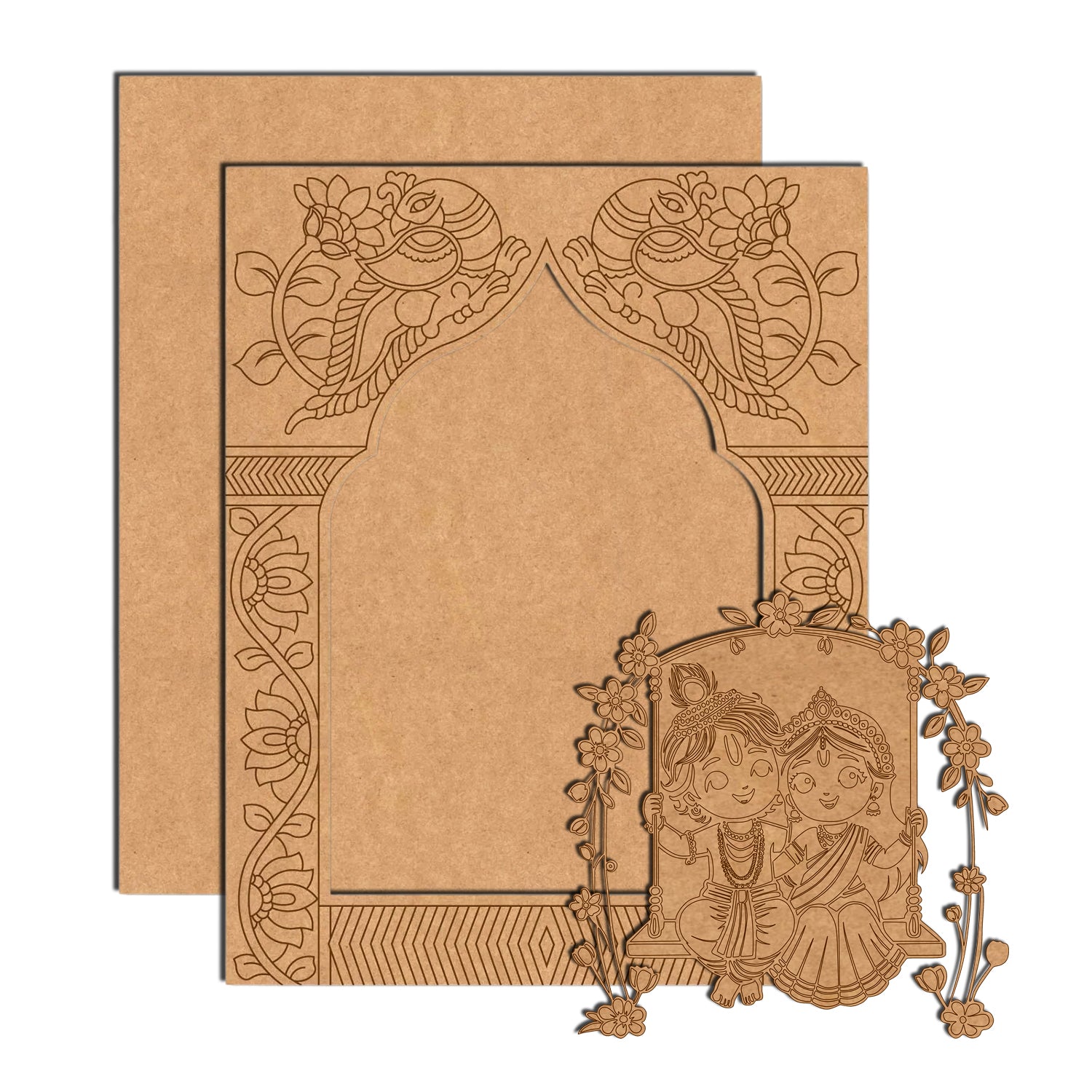 Pre-Marked MDF Radha Krishna Ji Cutout in Jharokha