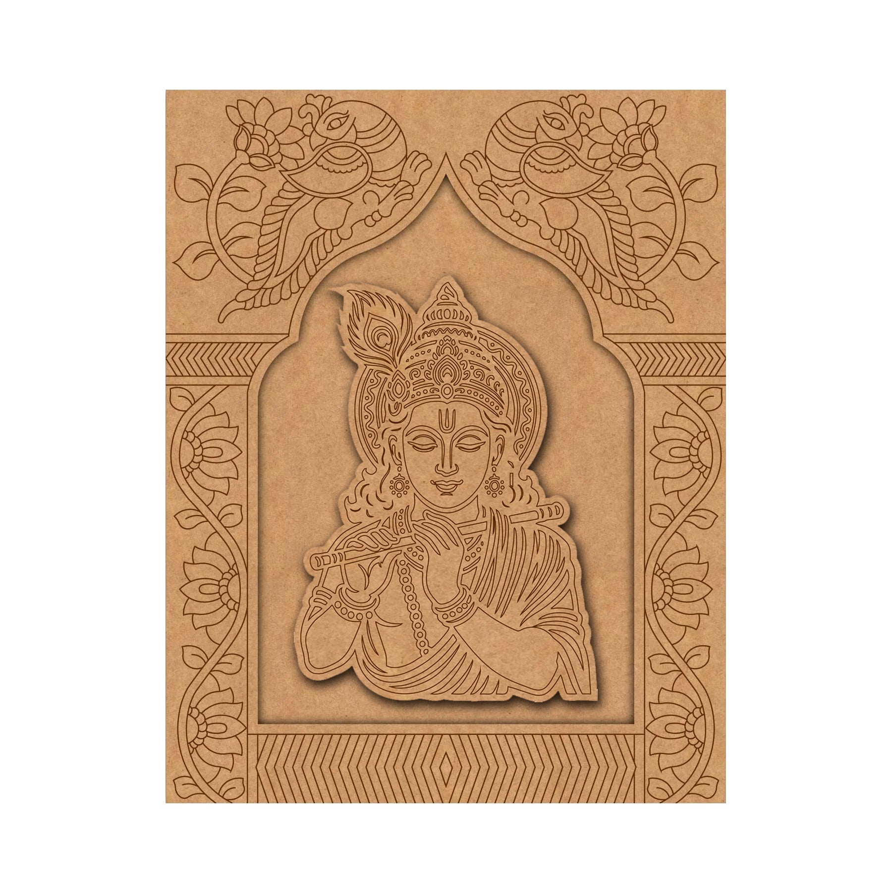 Pre-Marked MDF Krishna Ji Cutout in Jharokh
