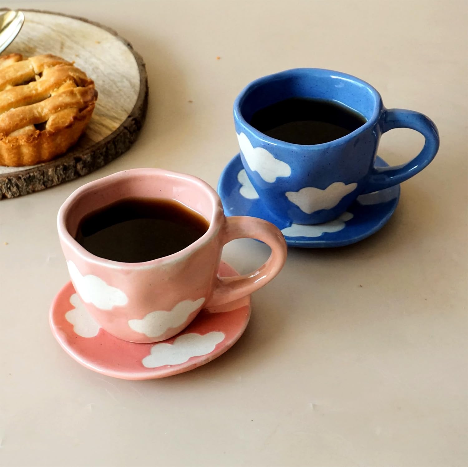 - 【ELEGANT DESIGN】Our cloud ceramic cups are irregularly shaped, the base color is candy pink, and the clouds are white, beautiful coffee mugs in a simple and elegant color scheme, it is a charming highlight for any tea table.